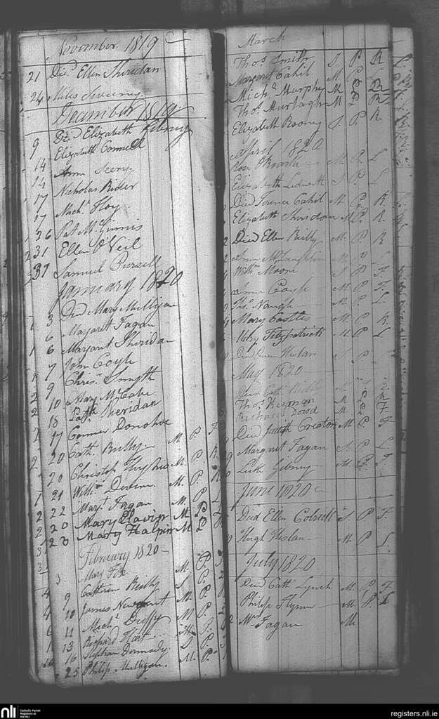 Castlepollard; County of Westmeath; Diocese of Meath. Deaths, Nov. 1819 to July 1820