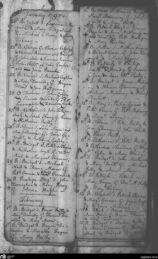 Castlepollard; County of Westmeath; Diocese of Meath. Baptisms, Jan. 1795 to Feb. 1795