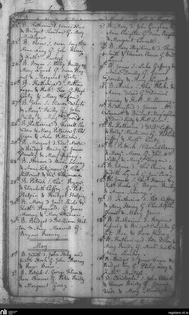 Castlepollard; County of Westmeath; Diocese of Meath. Baptisms, Apr. 1795 to May 1795