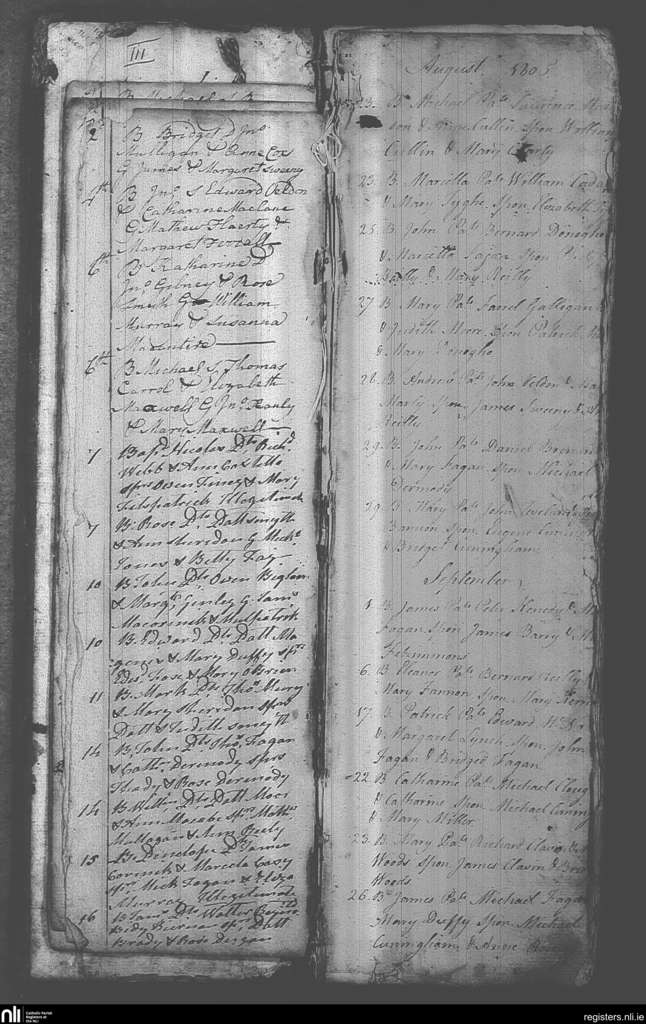 Castlepollard; County of Westmeath; Diocese of Meath. Baptisms, Feb. 1796 to Sep. 1805