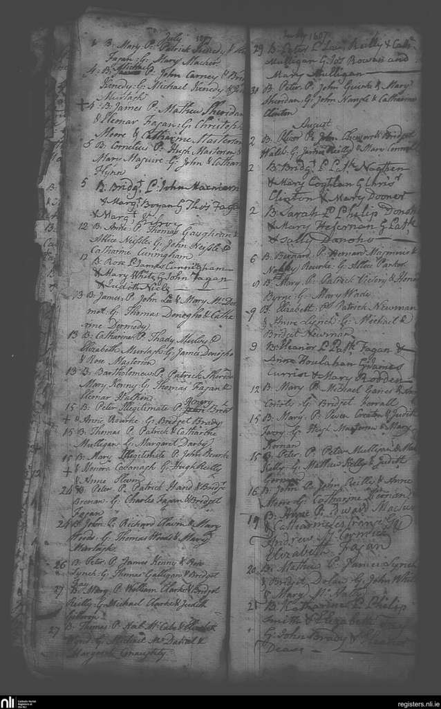 Castlepollard; County of Westmeath; Diocese of Meath. Baptisms, July 1807 to Aug. 1807