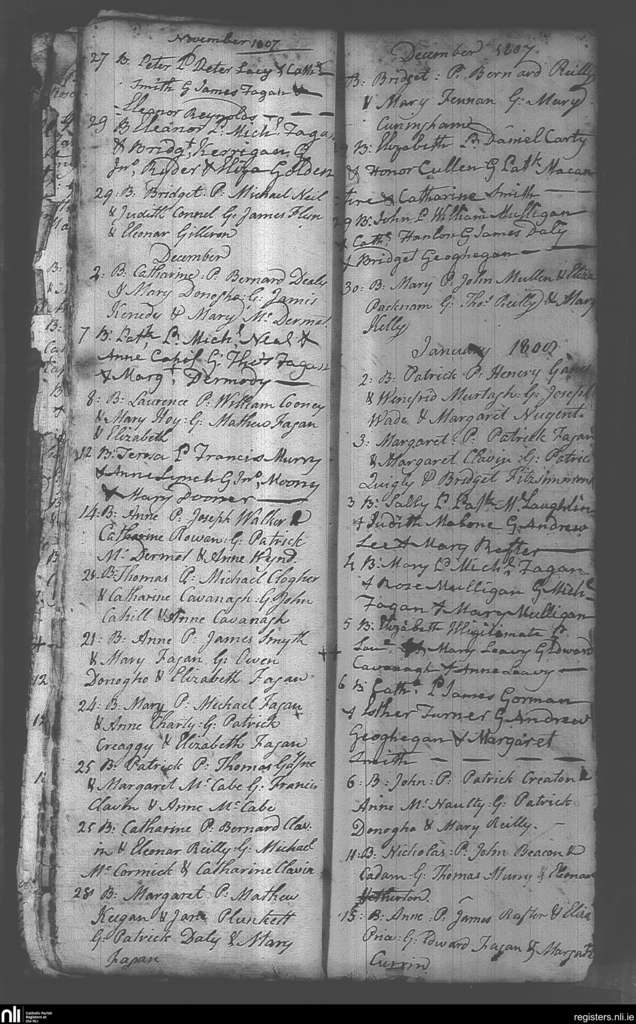 Castlepollard; County of Westmeath; Diocese of Meath. Baptisms, Nov. 1807 to Jan. 1808