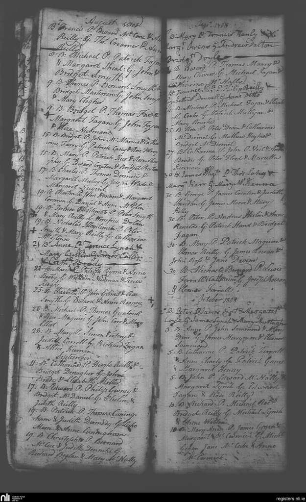 Castlepollard; County of Westmeath; Diocese of Meath. Baptisms, Aug. 1808 to Oct. 1808