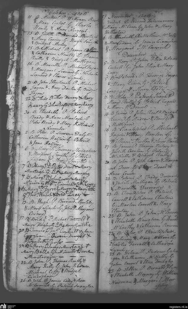 Castlepollard; County of Westmeath; Diocese of Meath. Baptisms, Oct. 1808 to Dec. 1808