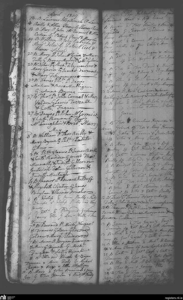 Castlepollard; County of Westmeath; Diocese of Meath. Baptisms, Apr. 1809 to June 1809