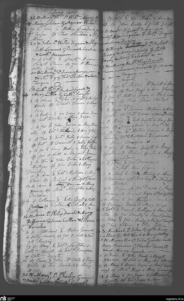 Castlepollard; County of Westmeath; Diocese of Meath. Baptisms, June 1809 to Aug. 1809