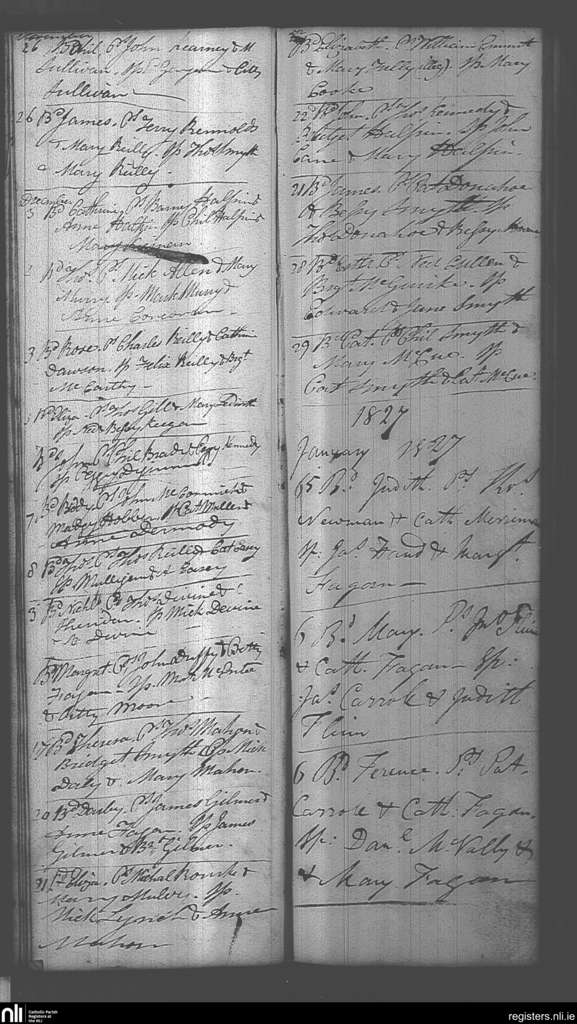 Castlepollard; County of Westmeath; Diocese of Meath. Baptisms, Nov. 1826 to Jan. 1827