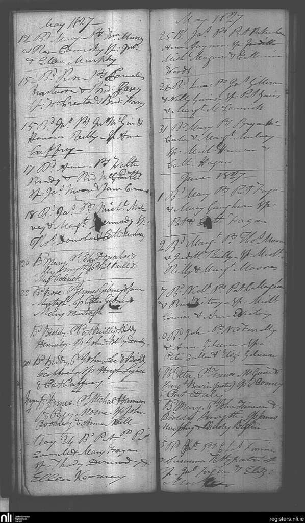 Castlepollard; County of Westmeath; Diocese of Meath. Baptisms, May 1827 to June 1827