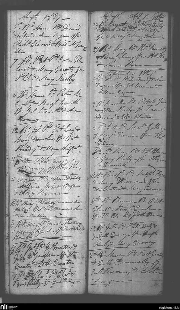 Castlepollard; County of Westmeath; Diocese of Meath. Baptisms, Aug. 1827 to Sep. 1827