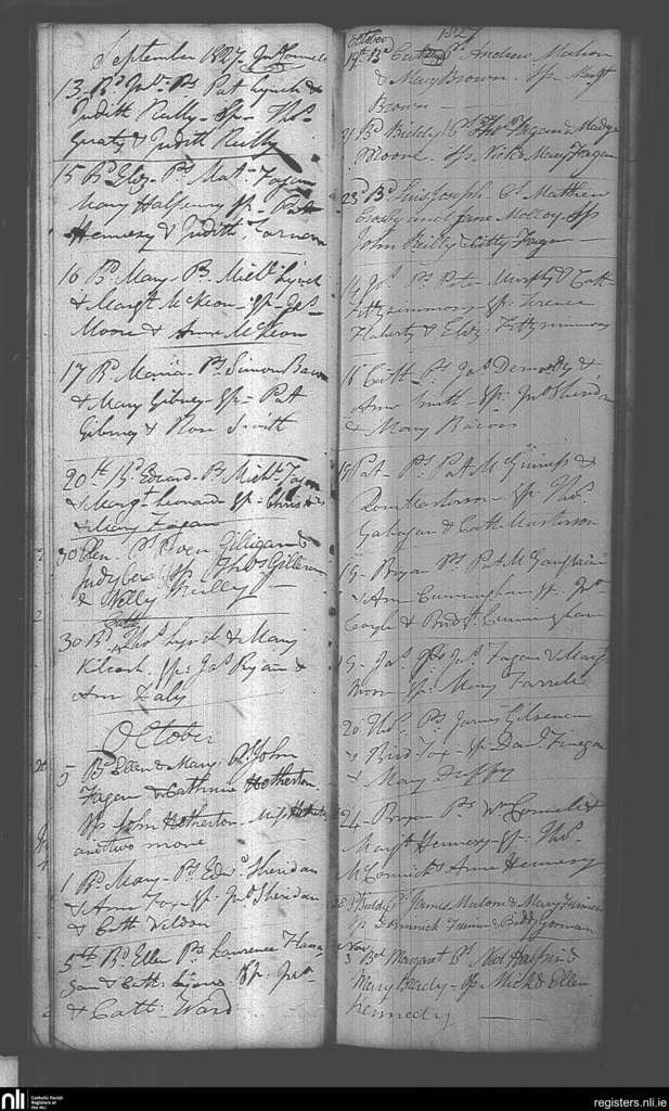 Castlepollard; County of Westmeath; Diocese of Meath. Baptisms, Sep. 1827 to Nov. 1827