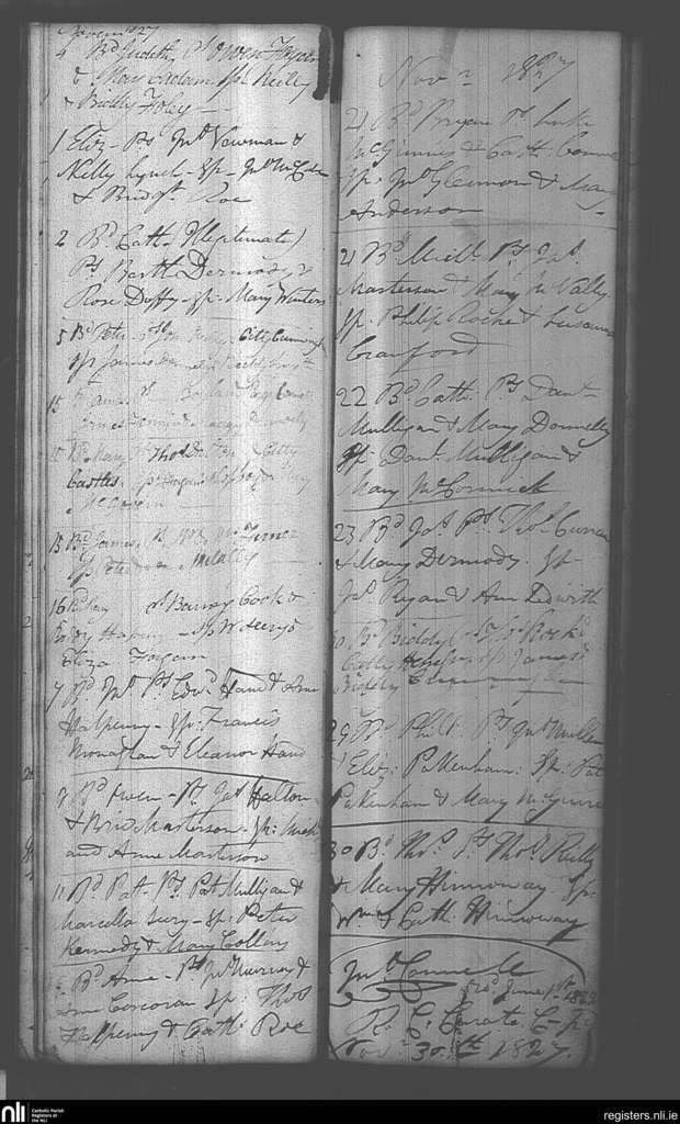 Castlepollard; County of Westmeath; Diocese of Meath. Baptisms, Nov. 1827