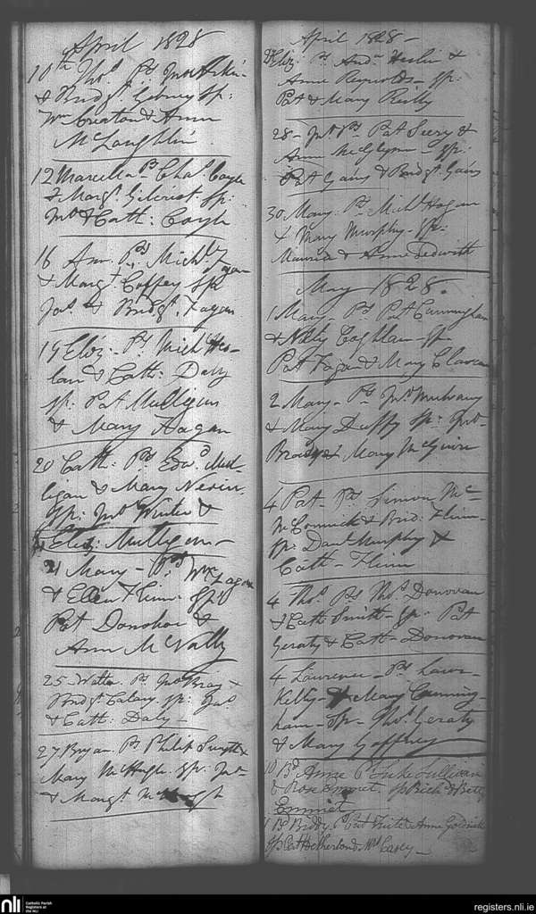 Castlepollard; County of Westmeath; Diocese of Meath. Baptisms, Apr. 1828 to May 1828