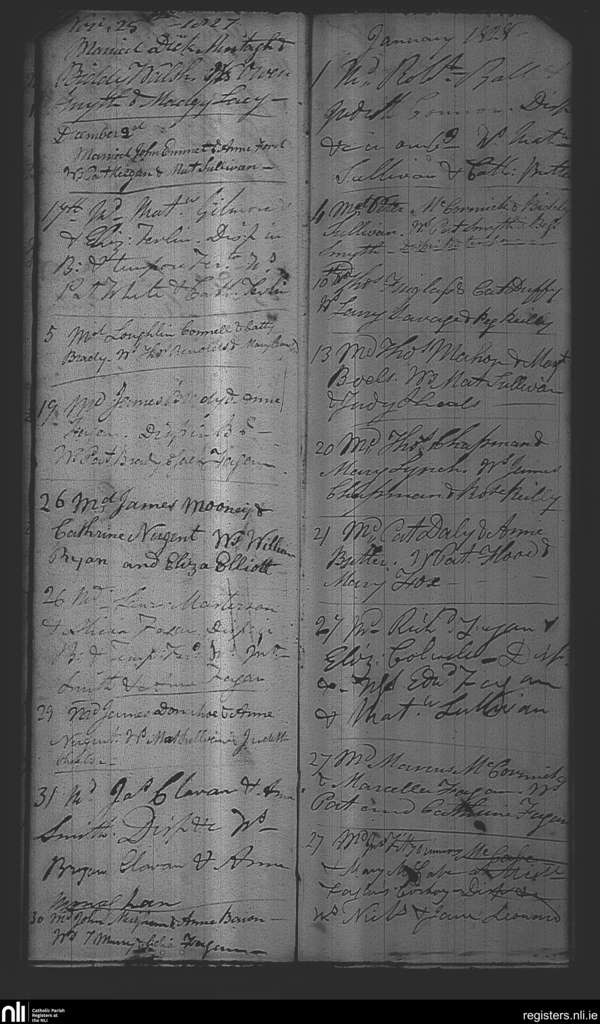 Castlepollard; County of Westmeath; Diocese of Meath. Marriages, Nov. 1827 to Jan. 1828