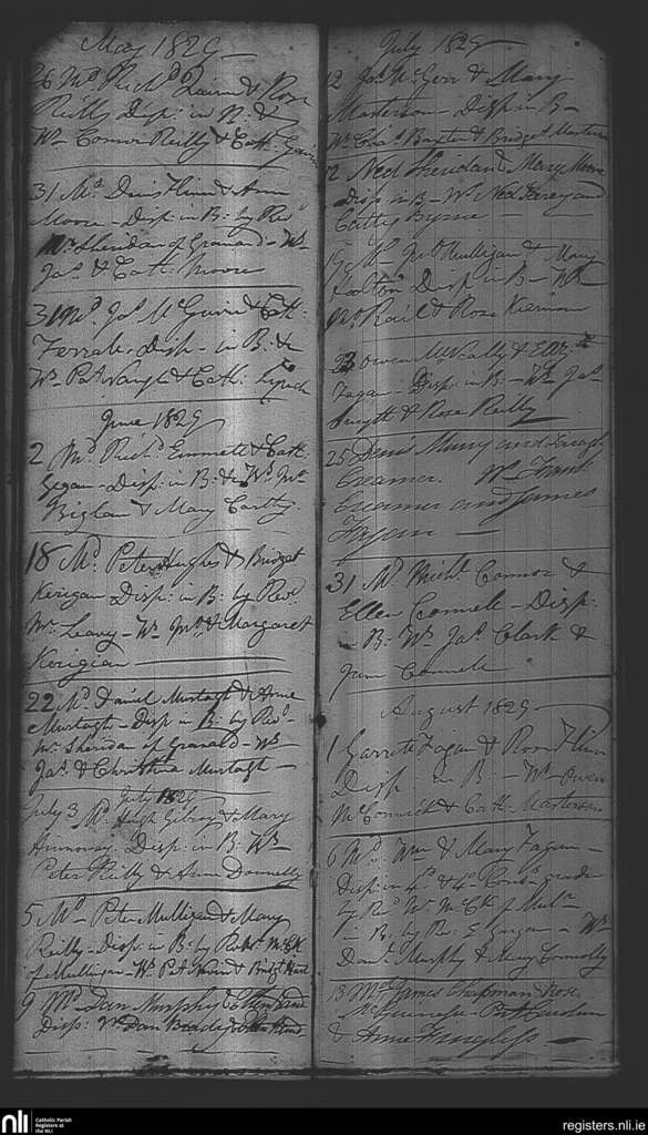 Castlepollard; County of Westmeath; Diocese of Meath. Marriages, May 1829 to Aug. 1829