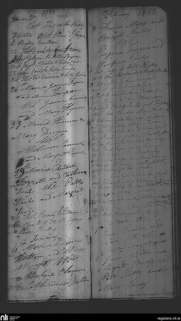 Castlepollard; County of Westmeath; Diocese of Meath. Marriages, Jan. 1832 to Mar. 1832