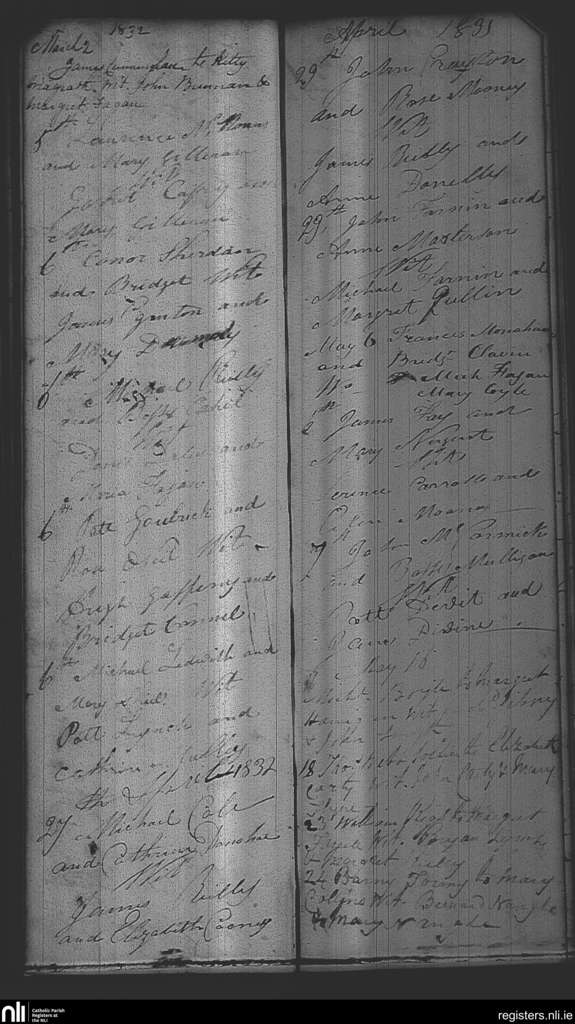 Castlepollard; County of Westmeath; Diocese of Meath. Marriages, Mar. 1832 to May 1832