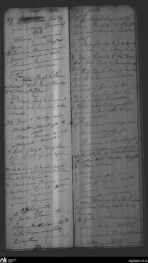 Castlepollard; County of Westmeath; Diocese of Meath. Marriages, May 1832 to Nov. 1832
