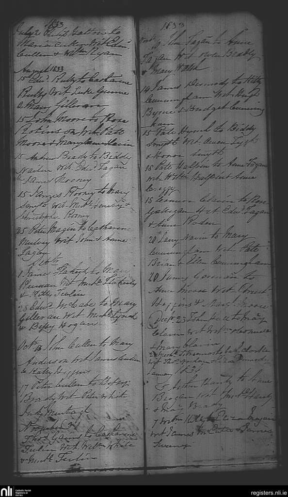 Castlepollard; County of Westmeath; Diocese of Meath. Marriages, July 1833 to Jan. 1834