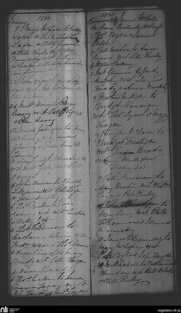 Castlepollard; County of Westmeath; Diocese of Meath. Marriages, Jan. 1834 to Feb. 1834