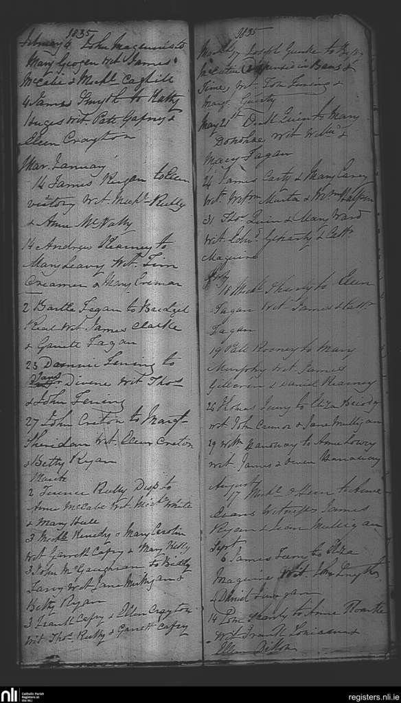 Castlepollard; County of Westmeath; Diocese of Meath. Marriages, Feb. 1835 to Sep. 1835