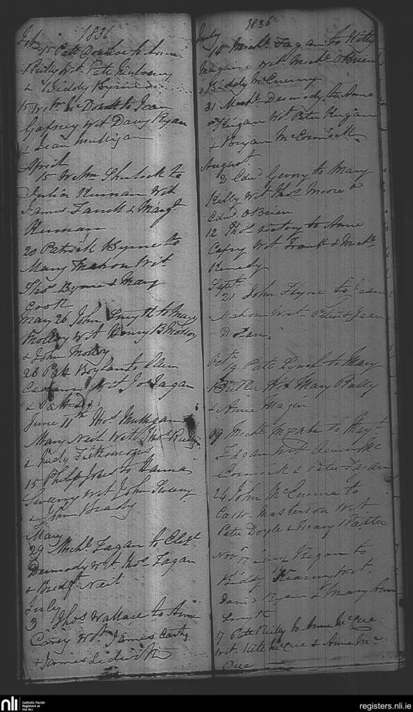 Castlepollard; County of Westmeath; Diocese of Meath. Marriages, Feb. 1836 to Nov. 1836