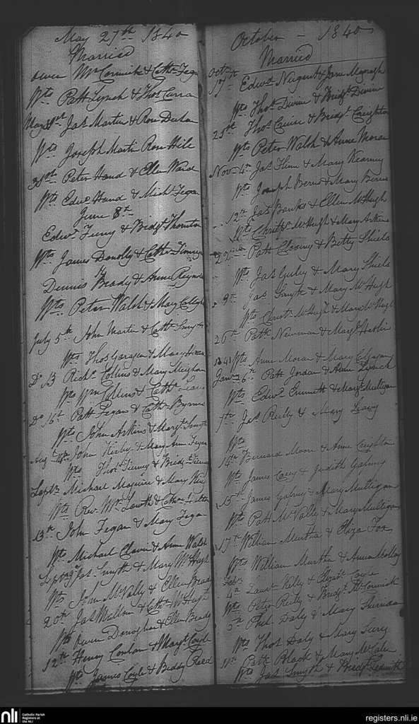 Castlepollard; County of Westmeath; Diocese of Meath. Marriages, May 1840 to Feb. 1841