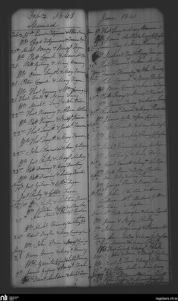 Castlepollard; County of Westmeath; Diocese of Meath. Marriages, Feb. 1841 to Nov. 1841
