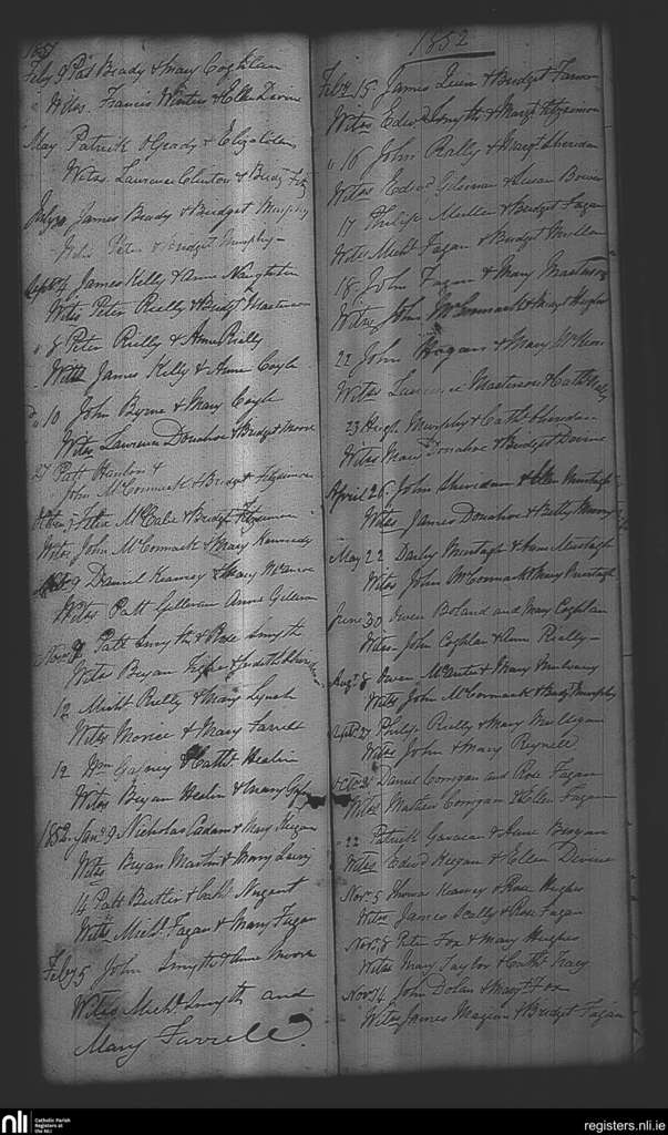 Castlepollard; County of Westmeath; Diocese of Meath. Marriages, Feb. 1851 to Nov. 1852