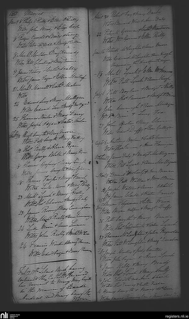 Castlepollard; County of Westmeath; Diocese of Meath. Marriages, Jan. 1857 to Feb. 1858