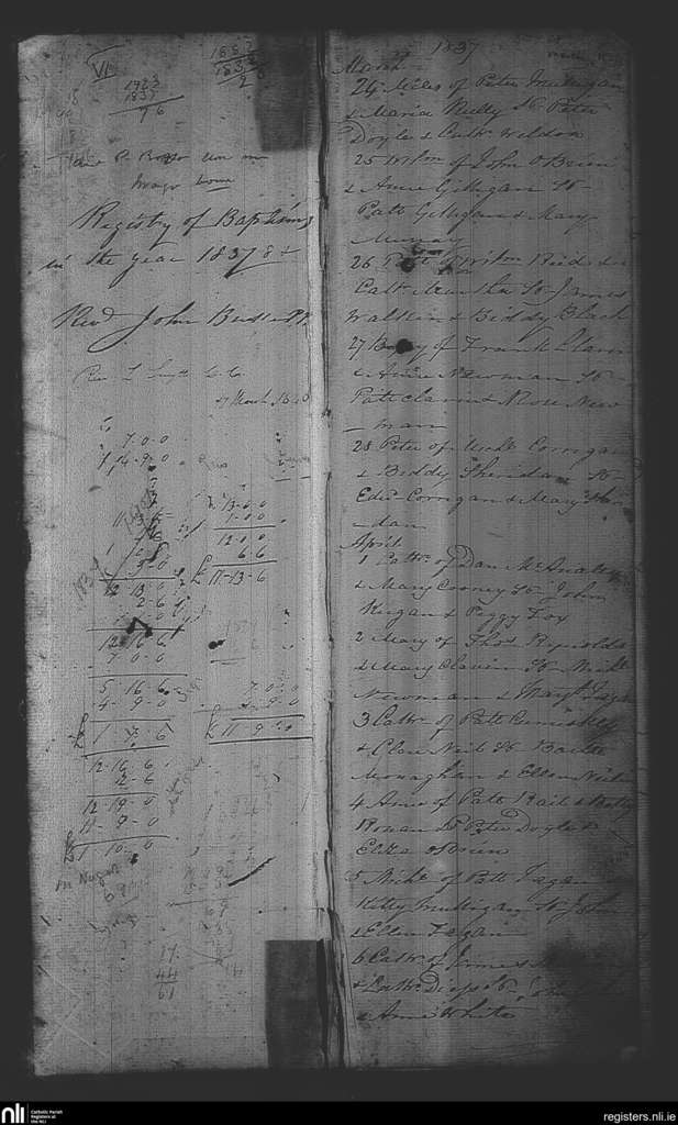 Castlepollard; County of Westmeath; Diocese of Meath. Baptisms, Mar. 1837 to Apr. 1837