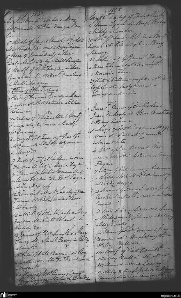 Castlepollard; County of Westmeath; Diocese of Meath. Baptisms, May 1838 to June 1838