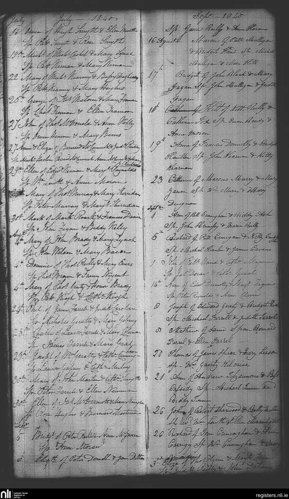 Castlepollard; County of Westmeath; Diocese of Meath. Baptisms, July 1840 to Sep. 1840