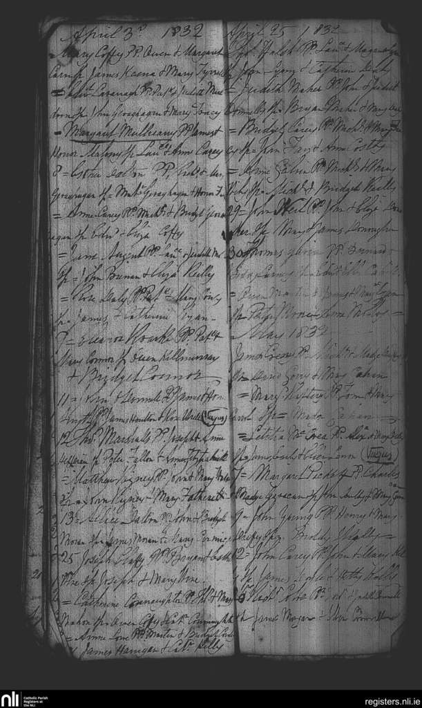 Castletown-Geoghegan; County of Westmeath; Diocese of Meath. Baptisms, Apr. 1832 to May 1832