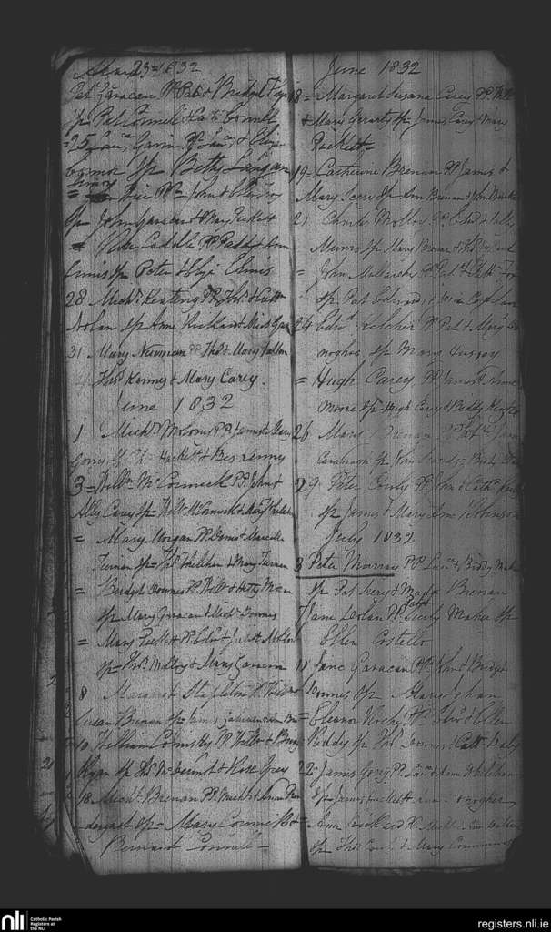 Castletown-Geoghegan; County of Westmeath; Diocese of Meath. Baptisms, May 1832 to July 1832