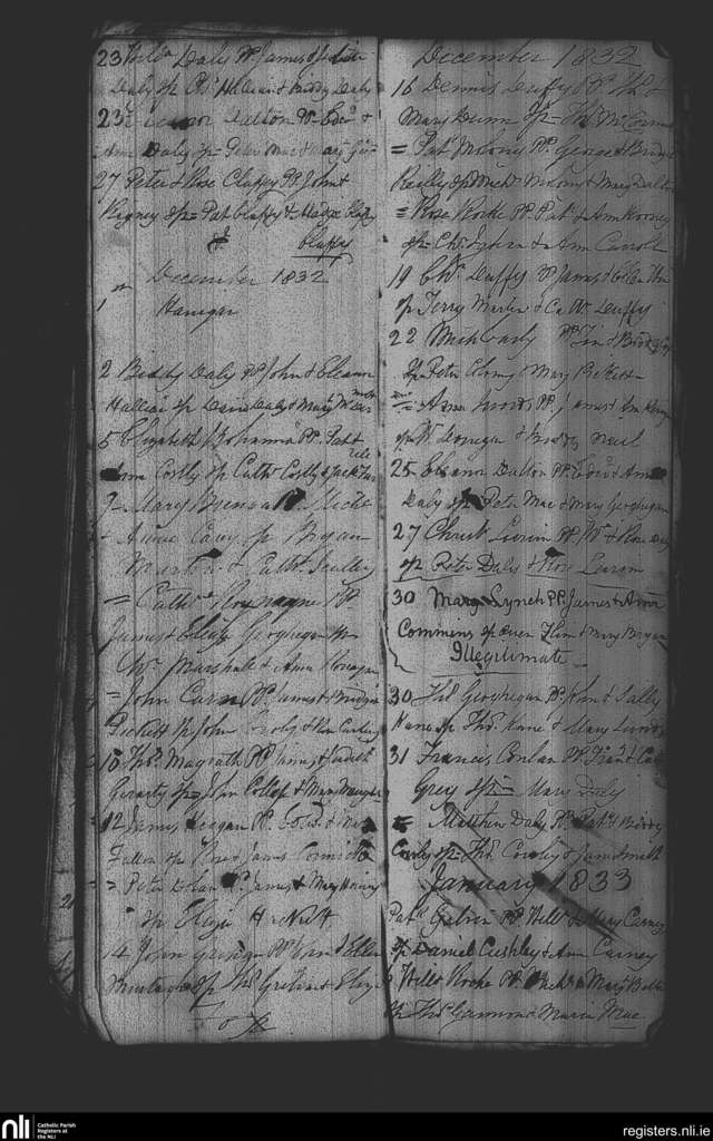 Castletown-Geoghegan; County of Westmeath; Diocese of Meath. Baptisms, Nov. 1832 to Jan. 1833