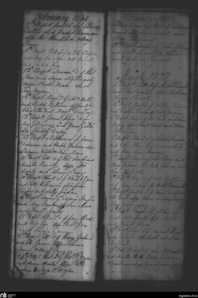 Castletown-Geoghegan; County of Westmeath; Diocese of Meath. Baptisms, Feb. 1837 to Mar. 1837