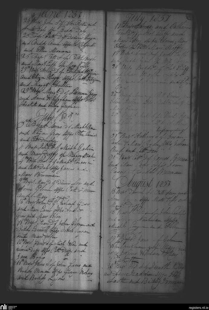 Castletown-Geoghegan; County of Westmeath; Diocese of Meath. Baptisms, June 1837 to Aug. 1837
