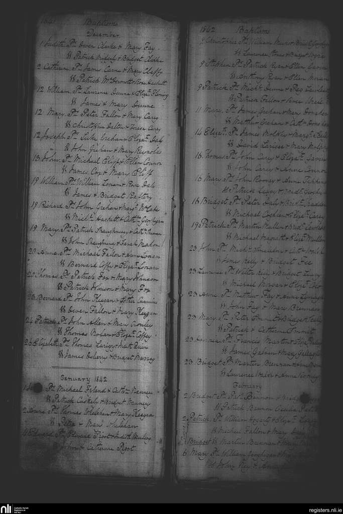 Castletown-Geoghegan; County of Westmeath; Diocese of Meath. Baptisms, Dec. 1841 to Feb. 1842