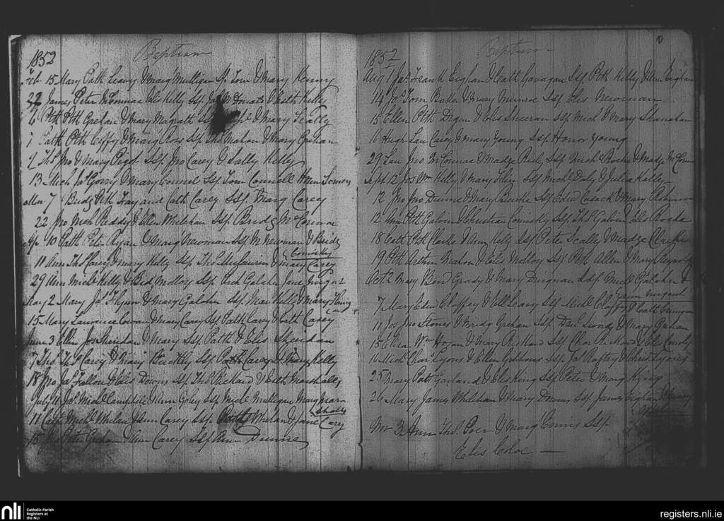 Castletown-Geoghegan; County of Westmeath; Diocese of Meath. Baptisms, Feb. 1852 to Nov. 1852