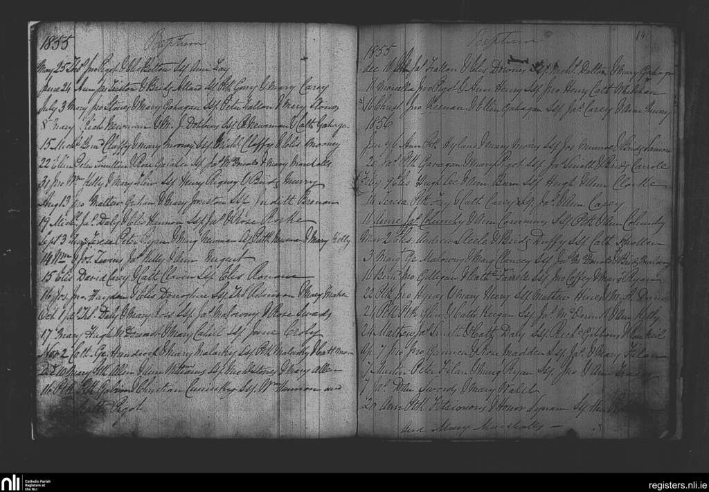 Castletown-Geoghegan; County of Westmeath; Diocese of Meath. Baptisms, May 1855 to Apr. 1856