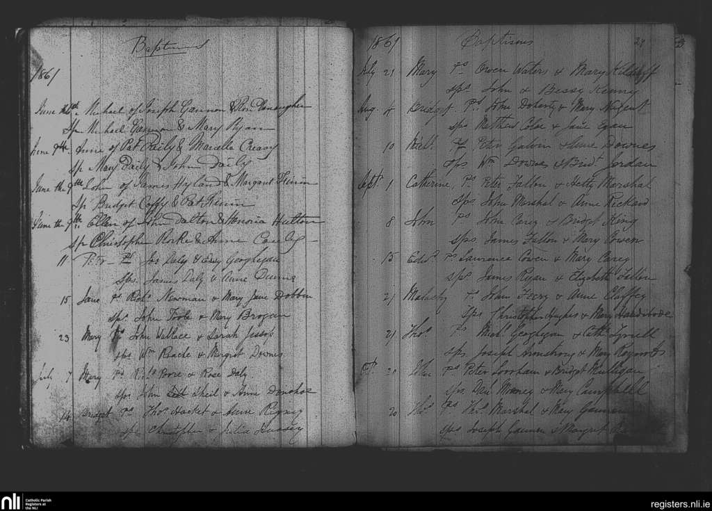 Castletown-Geoghegan; County of Westmeath; Diocese of Meath. Baptisms, June 1861 to Oct. 1861