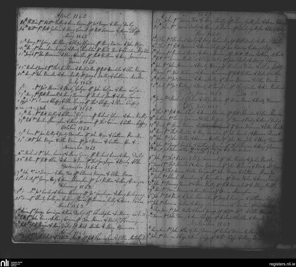 Castletown-Geoghegan; County of Westmeath; Diocese of Meath. Baptisms, Apr. 1862 to Sep. 1863