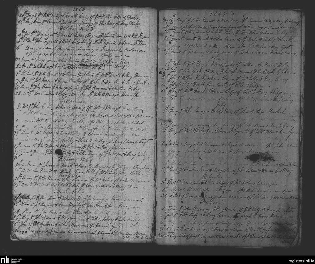Castletown-Geoghegan; County of Westmeath; Diocese of Meath. Baptisms, Sep. 1863 to Nov. 1864