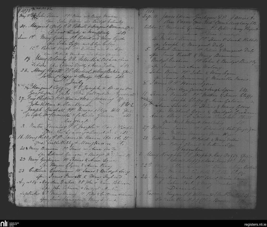 Castletown-Geoghegan; County of Westmeath; Diocese of Meath. Baptisms, May 1873 to Dec. 1873