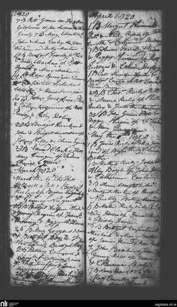 Castletown-Kilpatrick; County of Meath; Diocese of Meath. Baptisms, Feb. 1820 to May 1820