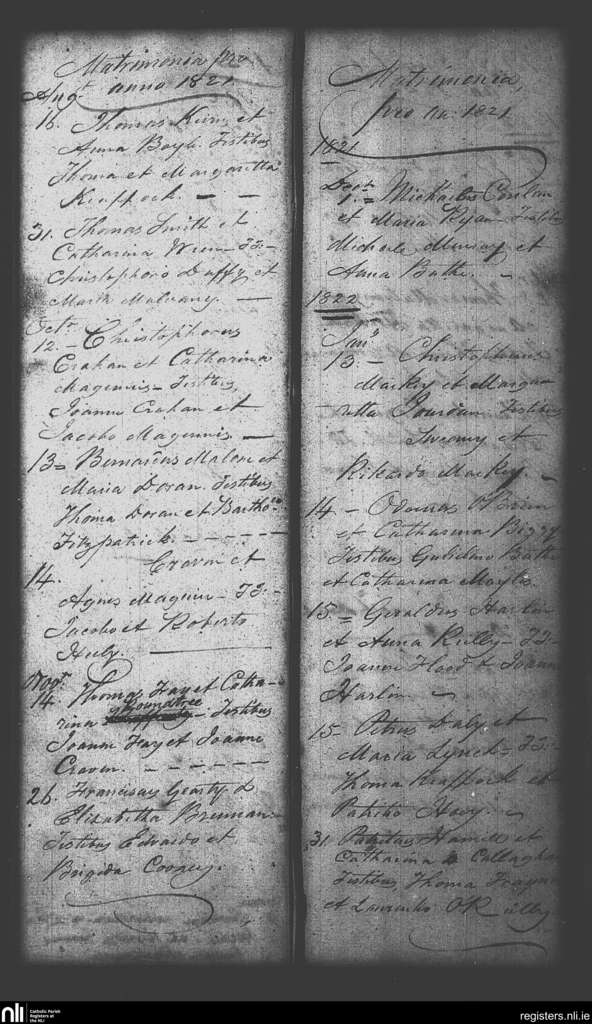 Castletown-Kilpatrick; County of Meath; Diocese of Meath. Marriages, Aug. 1821 to Jan. 1822