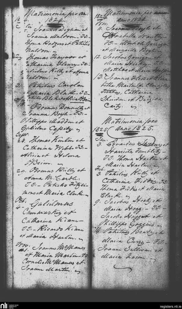 Castletown-Kilpatrick; County of Meath; Diocese of Meath. Marriages, July 1824 to Feb. 1825