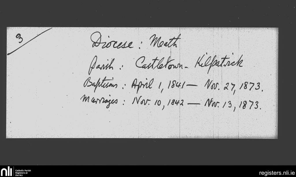 Castletown-Kilpatrick; County of Meath; Diocese of Meath. Baptisms