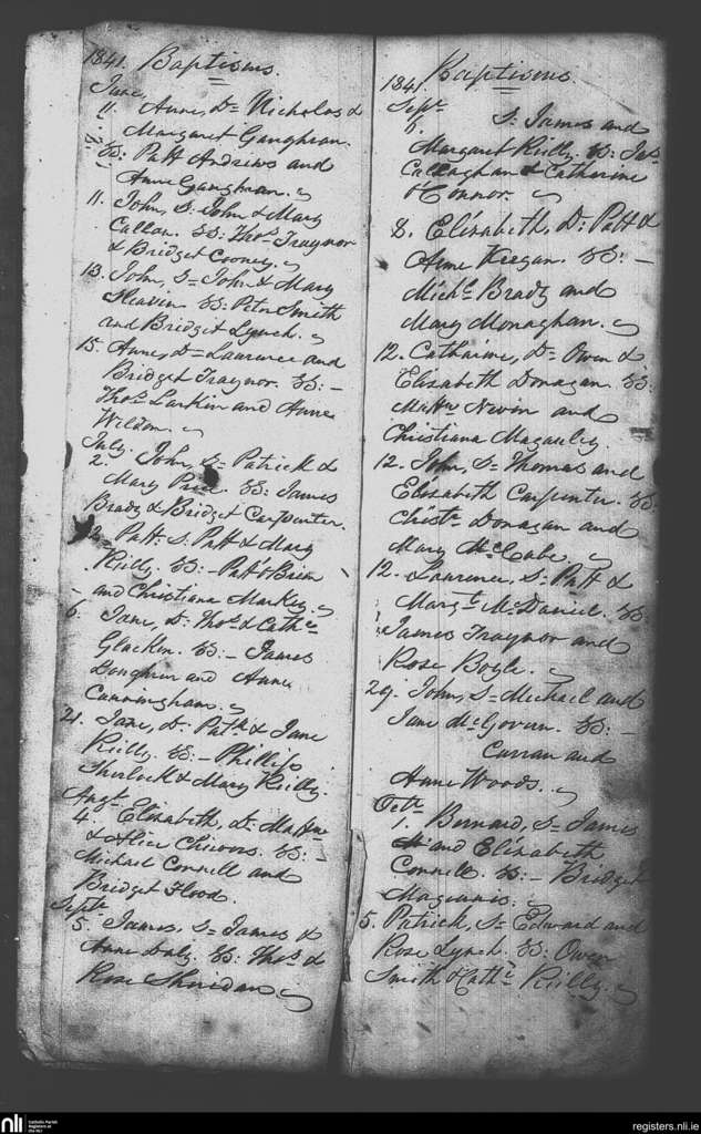 Castletown-Kilpatrick; County of Meath; Diocese of Meath. Baptisms, June 1841 to Oct. 1841