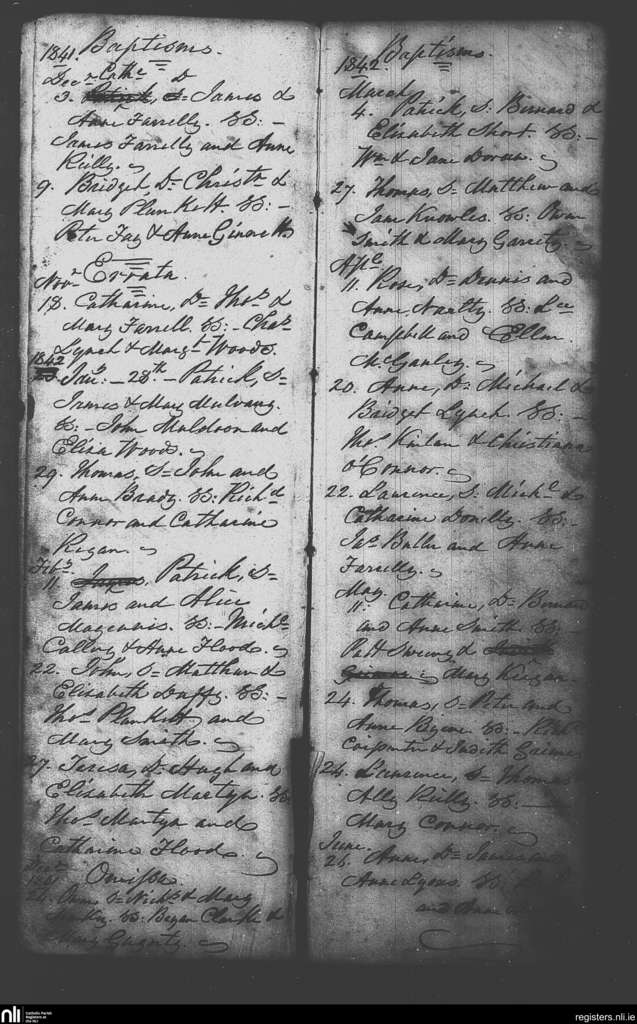 Castletown-Kilpatrick; County of Meath; Diocese of Meath. Baptisms, Nov. 1841 to June 1842